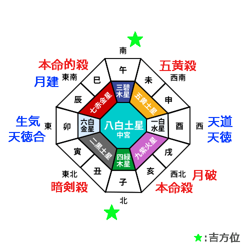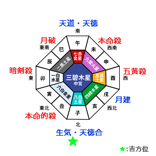 九紫火星の廻座する南に「本命殺」。