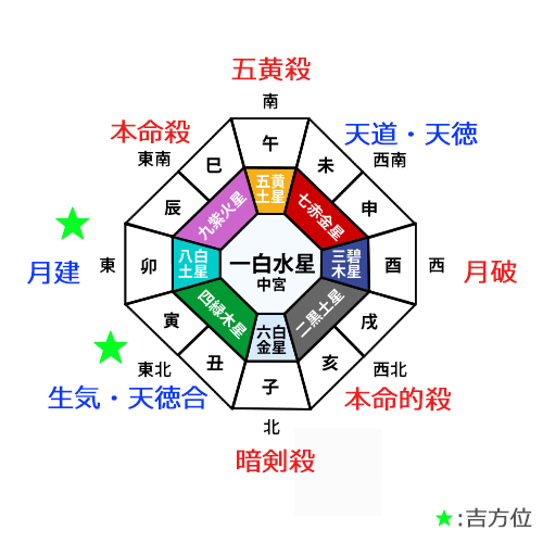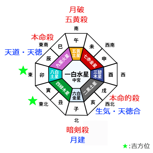 一白水星の廻座する北に「本命的殺」。