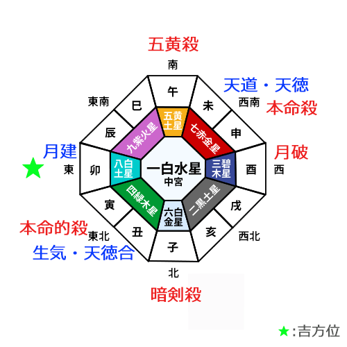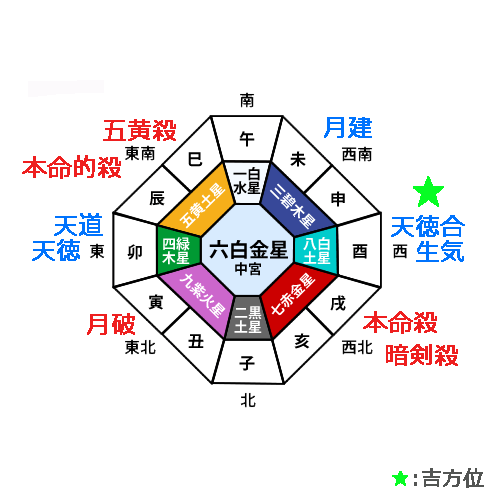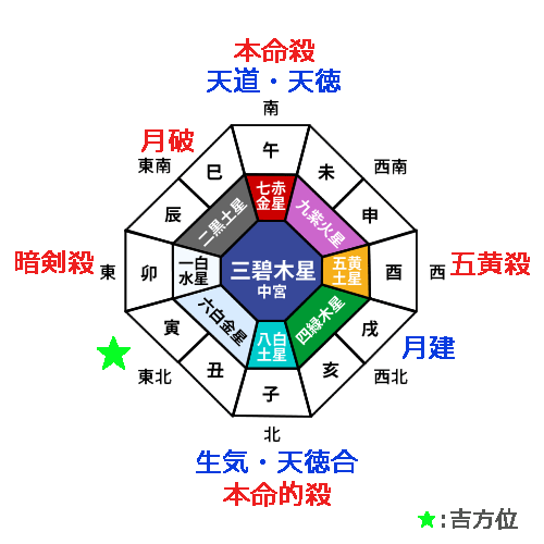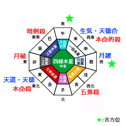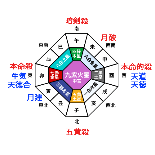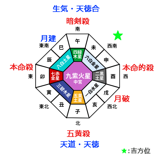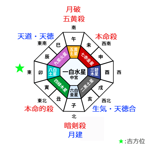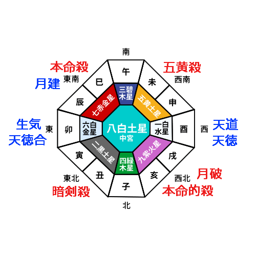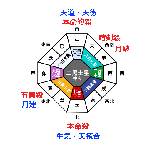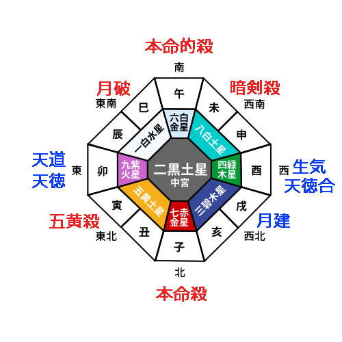 反対の西南西には、「太歳合(たいさいごう)」が位置し、さらに「歳破(さいは)」の大凶殺も巡ります。