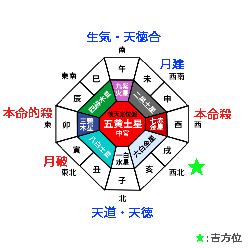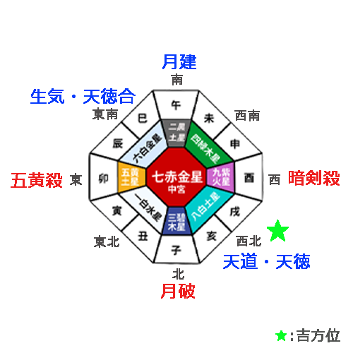 二黒土星の廻座する西南に「歳破」が巡ります。