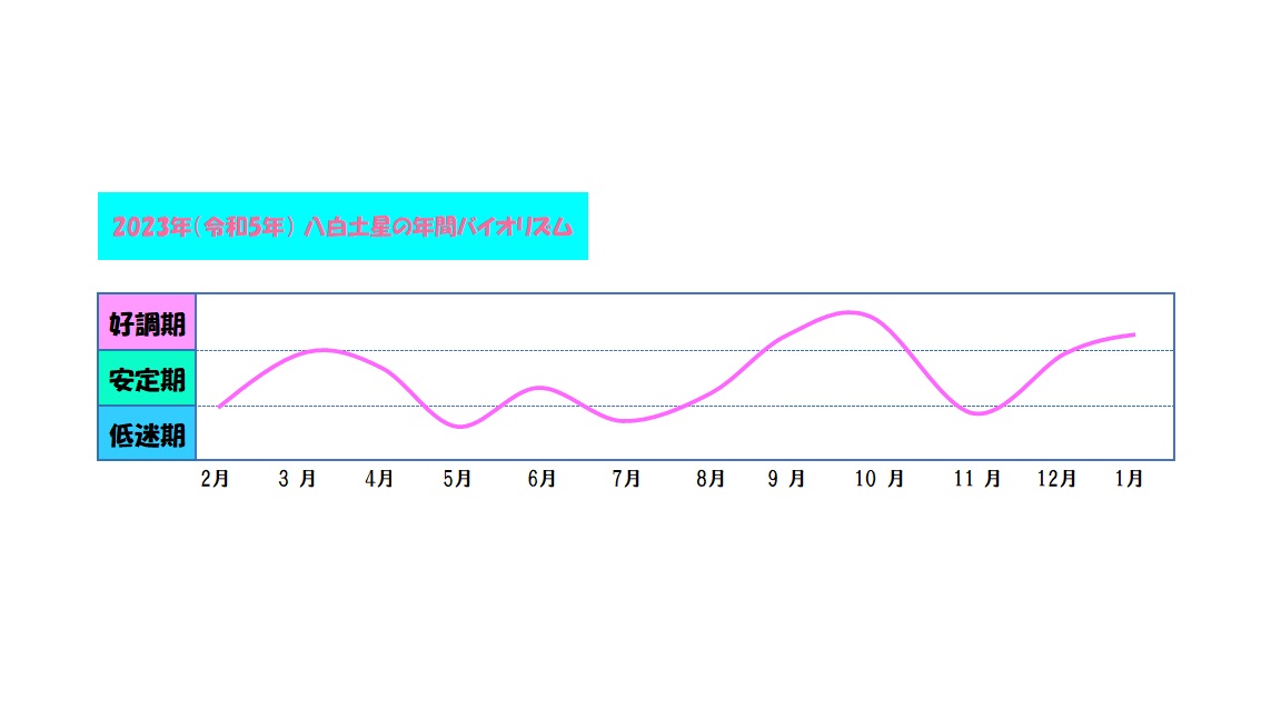 2023年の八白土星のあなたの運勢のバイオリズムは、変化の少ない一年。