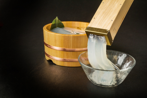 テングサは、寒天やところてんとして食べることが多いはずです。最近ではダイエット効果を見込んで、小麦の麵の代わりに使うことも増えています。ところてんも関東では三杯酢、関西では黒蜜と食べ方が異なるので話の種になることも多いです。