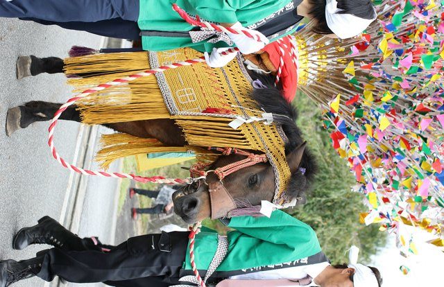 その後に、行列を神社で待っていた人が馬に近づき花を取り合うのです。流れのゆっくりしたお祭りだと思いきや、最後にアグレッシブになります。
