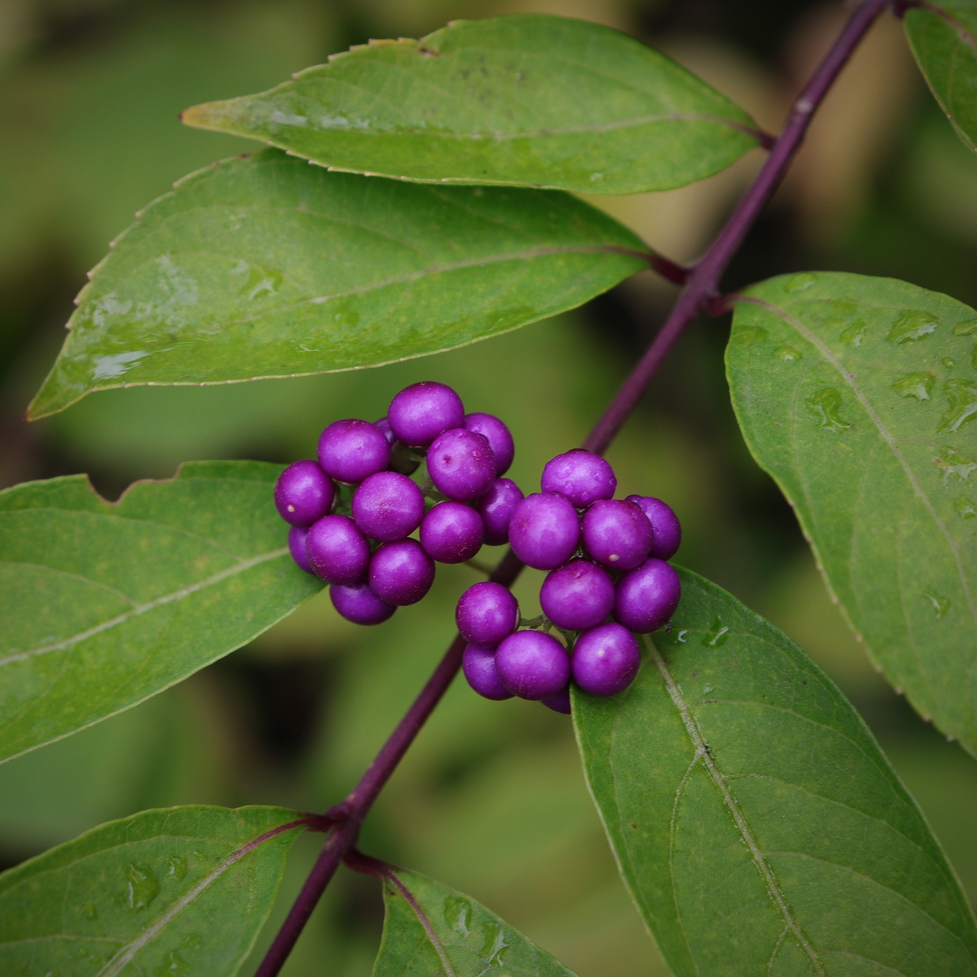 緑の葉の付け根に紫の実がなる様子は色鮮やかで、人々の目を惹きつけます。