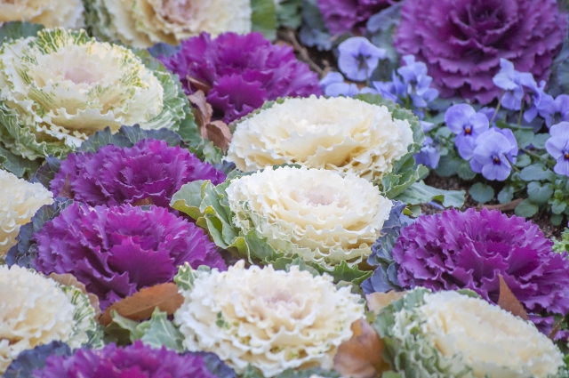 葉牡丹は今では冬の花壇を彩るのに欠かせない植物です。