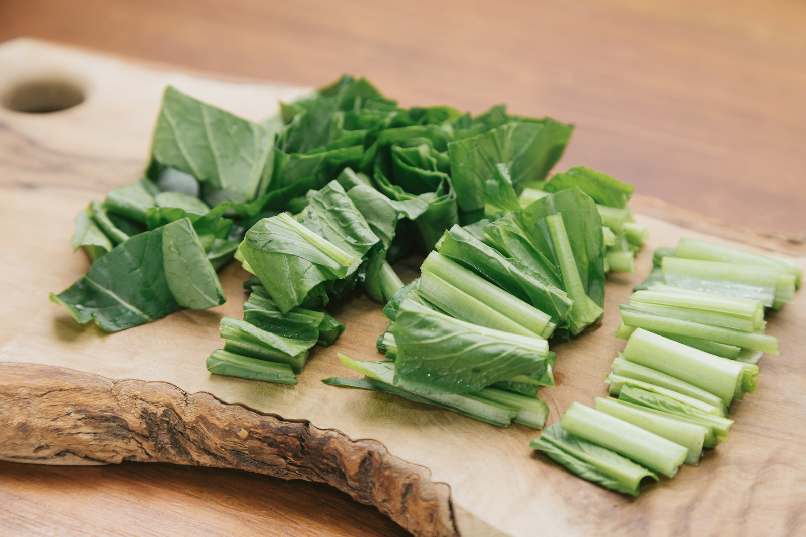 まず小松菜は食べやすい大きさにカットし洗っておきましょう。