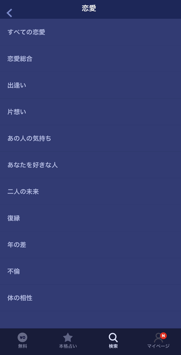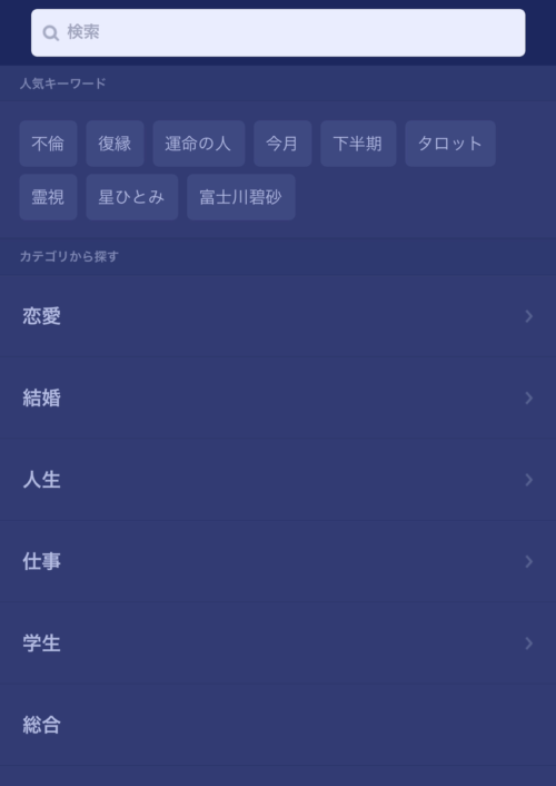 カテゴリから占いたい運勢を探す時には、検索からすぐに見つけることができます。