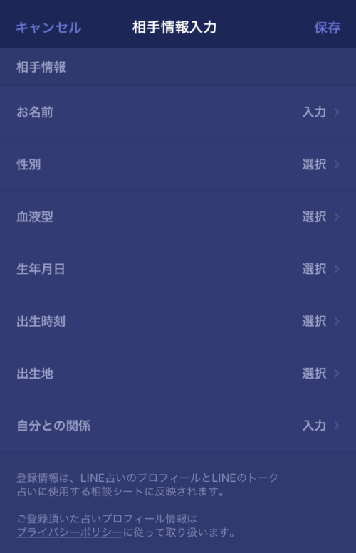 プロフィール情報が入力されていない場合には、占い結果を見る事ができません。