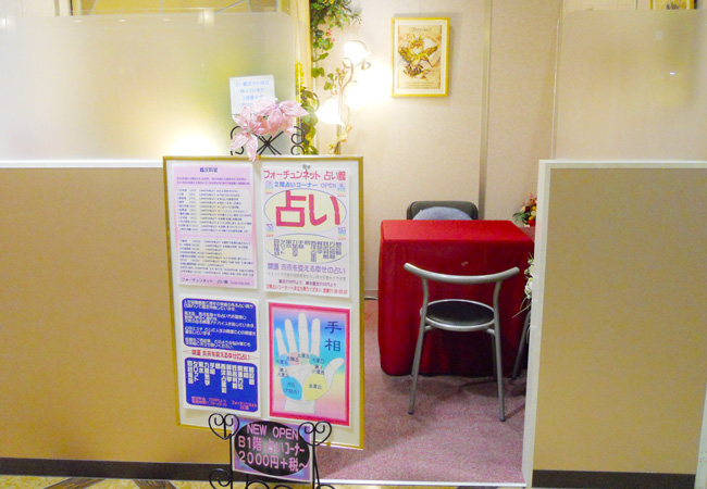 商業施設内にある占いコーナーなので、他の目的を楽しみながらホッと一息つける場所としても利用できます。