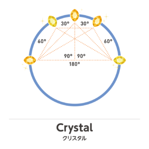 天体同士の角度が60度の角度になり、双方の天体のエネルギーが補完的で調和し合い、良い関係を形成することができる関係です。