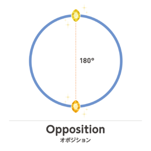 天体同士の角度が180度の関係で、真逆の位置に配置されています。