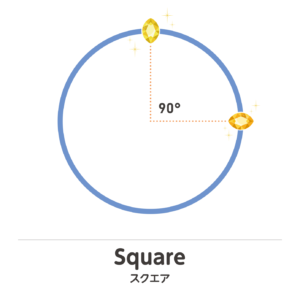 スクエアになるとかなり大きなインパクトがあり、カチッとスイッチが切り替わる瞬間を経験し、衝撃やなんらかのショックなどを経験し、反動そのものが起こり、一つの天体の力が増し、もう一つの天体に影響を与えるので同時進行するのが困難で、意図せずに不意を突かれるような状況になりますが、変化そのものを起こすパワーになりやすいでしょう。