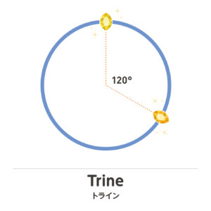 3つの天体がお互いにトライン(同じ角度)に配置され、ホロスコープ上で正三角形を形作ります。