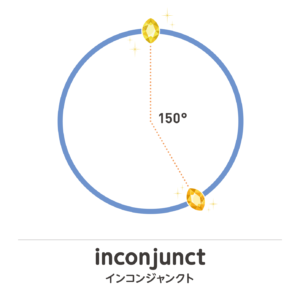 天体同士の角度が150度になることをインコンジャンクトと言い別名では「クインカンクス」と呼ぶときもあります。