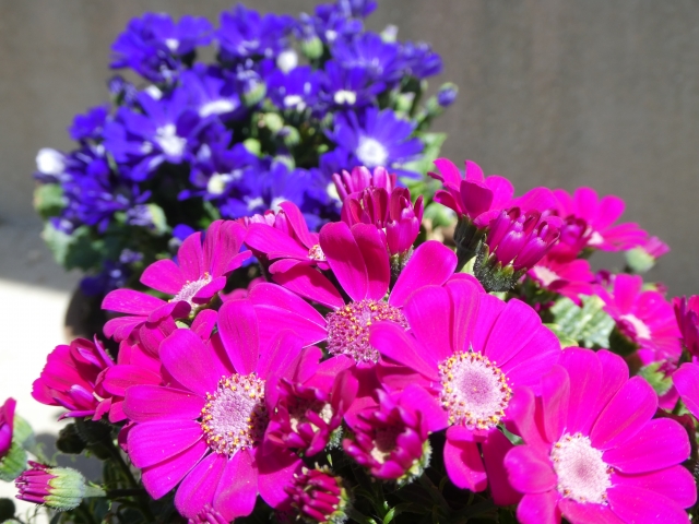 シネラリアは、カラーバリエーションが豊富である花です。赤が有名かもしれませんが、青、紫、白などの花を株一杯につけてくれます。