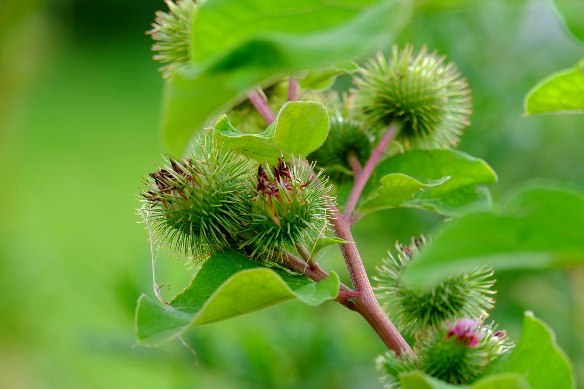 ゴボウの花を見つけたら、トゲには十分注意してください。