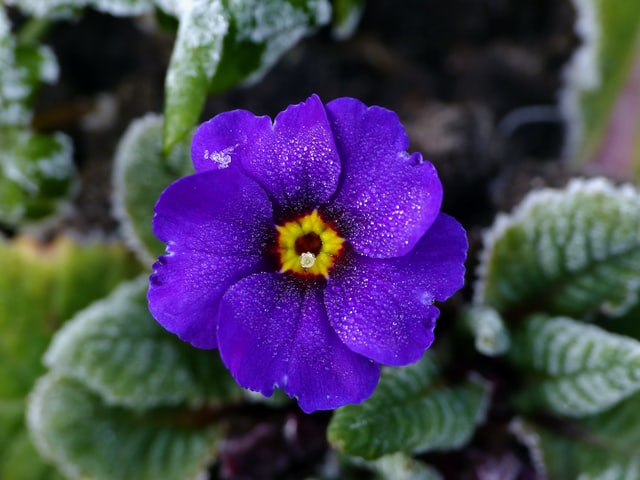 紫色が華やかで美しい花です。特にこの冬の時期に花を咲かせる花としてはとても明るい色をしていると言えるでしょう。
