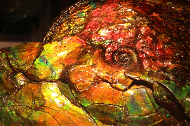 それだけでなく、宝石だから化石と聞いてイメージする形とは少し違うわ。虹色に光ってすごいわよ。