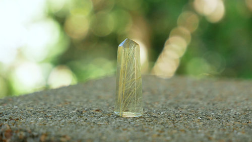 水晶の中に閉じ込められている、金色の針状になったルチルが一つ一つ違う表情を見せてくれる、ゴールドルチルクォーツ。