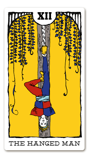 吊られた男が逆さ吊りにされたことで、事態を打開するアイディアがふとわいてきたように、このカードが出てきたら、つらい状態でもそれを逆手に取ったアイディアが浮かぶという暗示です。