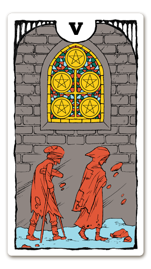 タロットカードペンタクルの5の絵柄の説明【ペンタクルの5の人物像とは?】