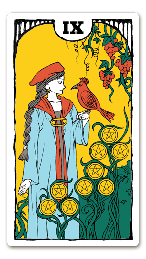 タロットカードペンタクルの9の絵柄の説明【ペンタクルの9の人物像とは?】