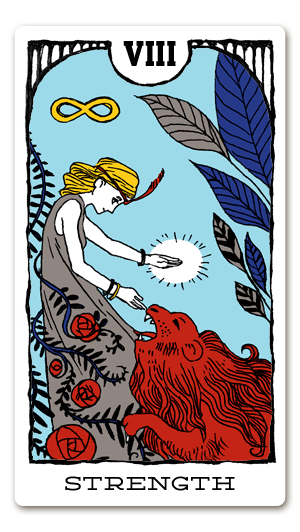 力のカードは、「強い精神による勝利」を意味しており、強靭な精神力と意思の力で問題を乗り越えることができるという、ポジティブな行動や感情をあらわしています。