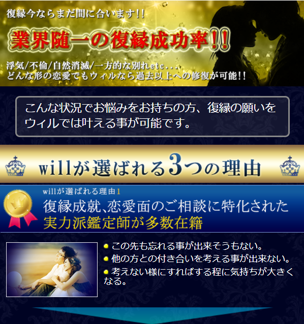 今、恋に悩める女性を中心に人気沸騰中の電話占いと言えばウィルです。