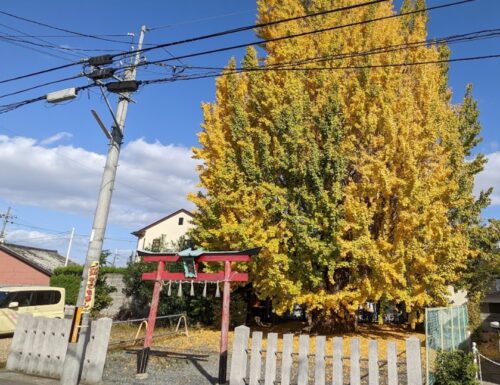 イチョウの木の根本には、除災招福のご利益のある「八大龍王」と金運アップのご利益がある「弁財天」が祀られている祠。