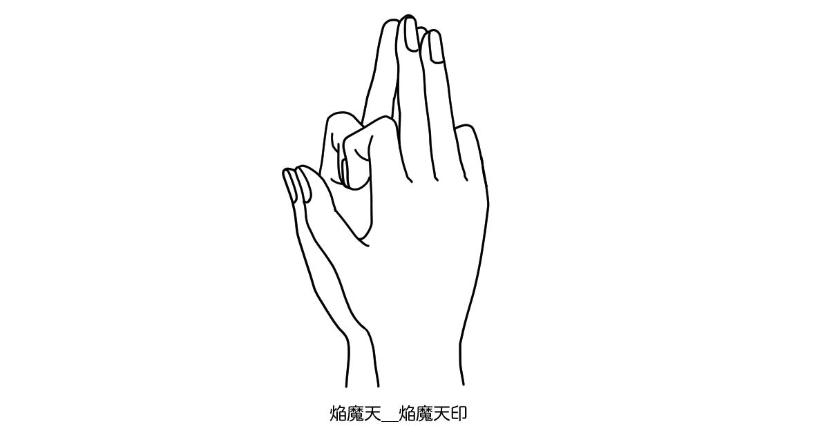 中指、薬指は伸ばしたまま合わせ、小指は第二関節で折り曲げて合わせる…これが、焔魔天印です。
