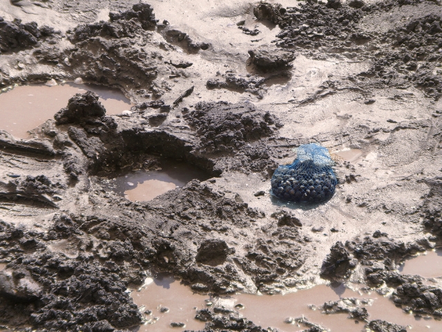 マテガイは干上がった干潟でさえも30cmも深くに埋まっていると言われています。なので、アサリなどと比べてなかなか見つかりません。