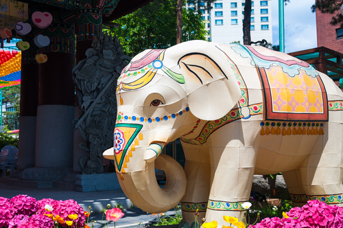 「花御堂(はなみどう)」を背中に乗せていない場合もありますが、白いゾウに関しては共通しているといえます。