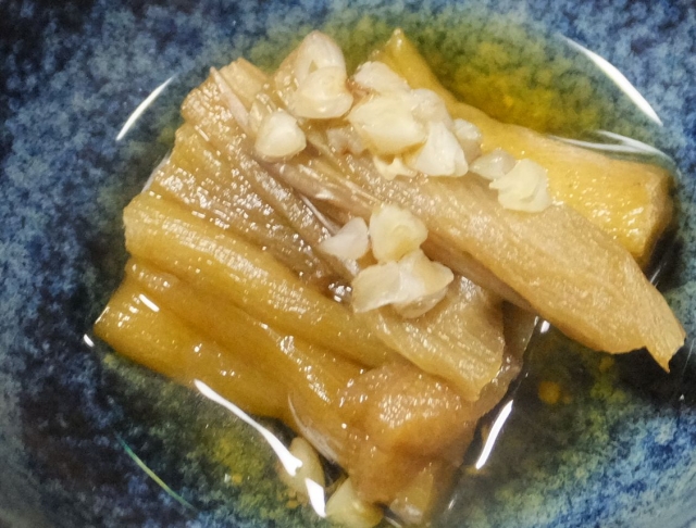 なので、ずいきの炊いたんは簡単にいうと煮物ですね。ずいきの食べ方として決まりはありませんが、煮物にして食べられることが多いと思います。