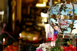 盆提灯は盆棚や仏壇の前、初盆用の白提灯は玄関あ部屋の窓側に飾り、夕方以降に灯すようにしましょう。