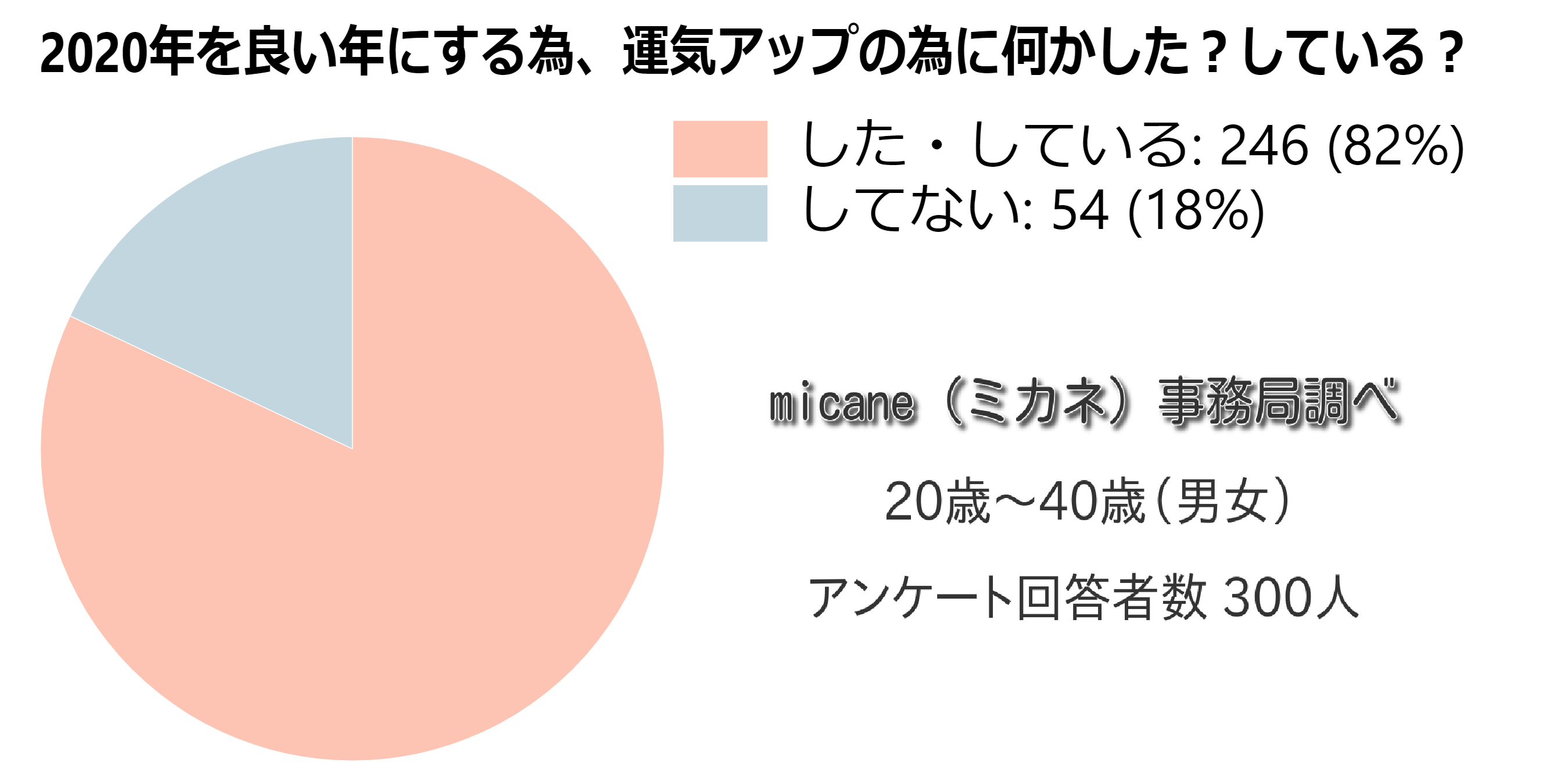 「2020年を良い年にする為、運気アップの為に何かした?している?」というアンケートを男女300名に実施したところ驚きの回答結果となりました。