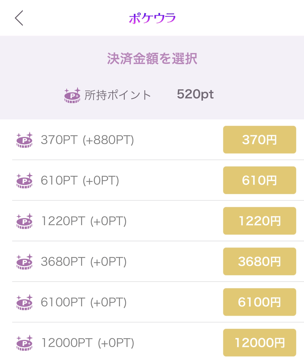 ポイント購入は、アプリストア経由のため、Google play・App Store決済。