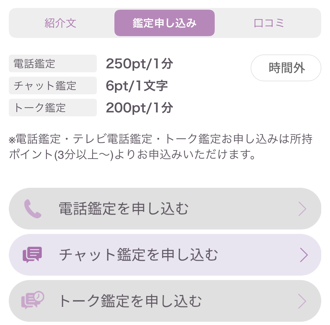 チャット鑑定1文字4ポイント・電話鑑定1分190ポイント。