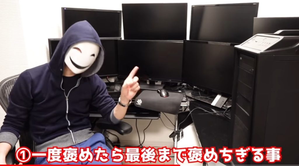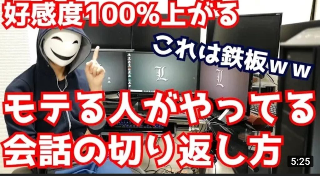 顔を出したくないyoutuberさんも多いですが、恋愛テクニックを配信するyoutuberということもあり仮面をかぶったミステリアスな雰囲気も良いですよね。