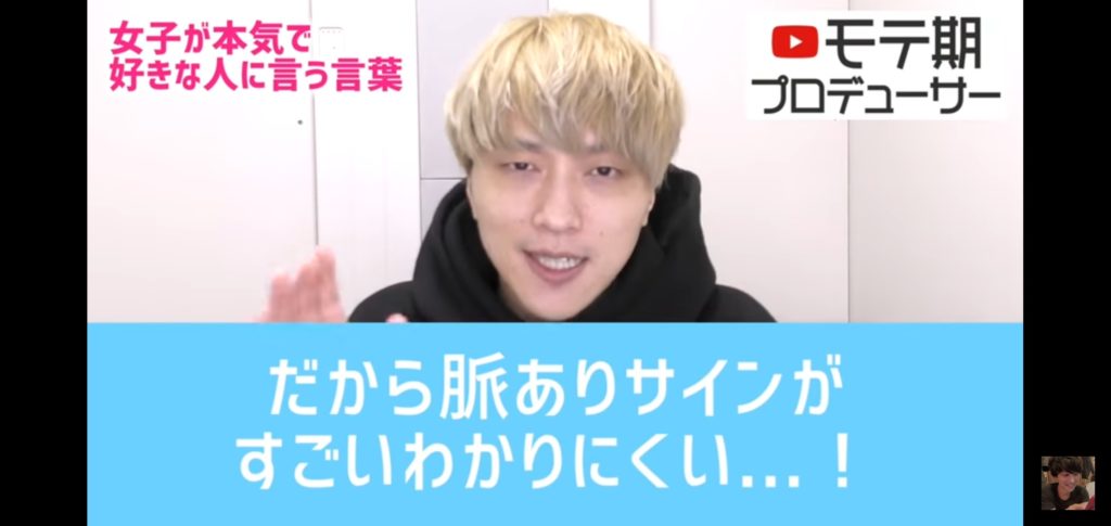 - 1.2 YouTube「モテ期プロデューサー荒野」人気動画”たった一言で脈ありか”どんな配信?