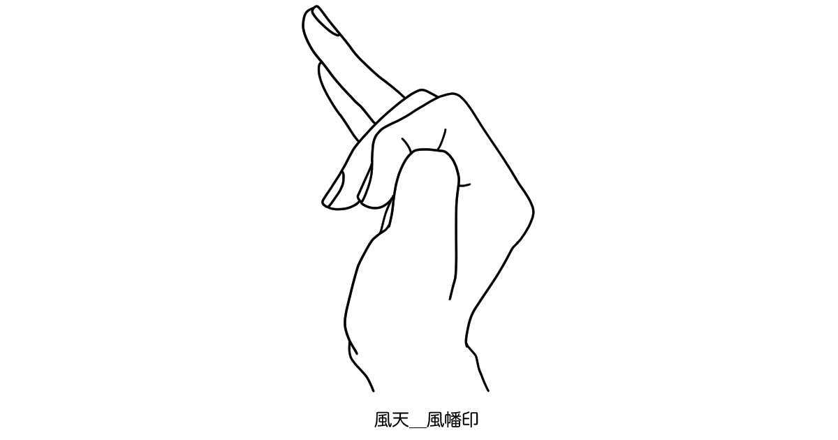 風天印は、左手の親指・人差し指・中指を揃えて立てて残りの二本を曲げる手印です。