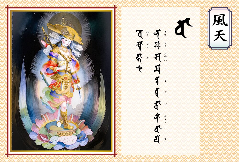 風天の真言(マントラ)は、「ナウマク・サマンダ・ボダナン・バヤベイ・ソワカ」です。
