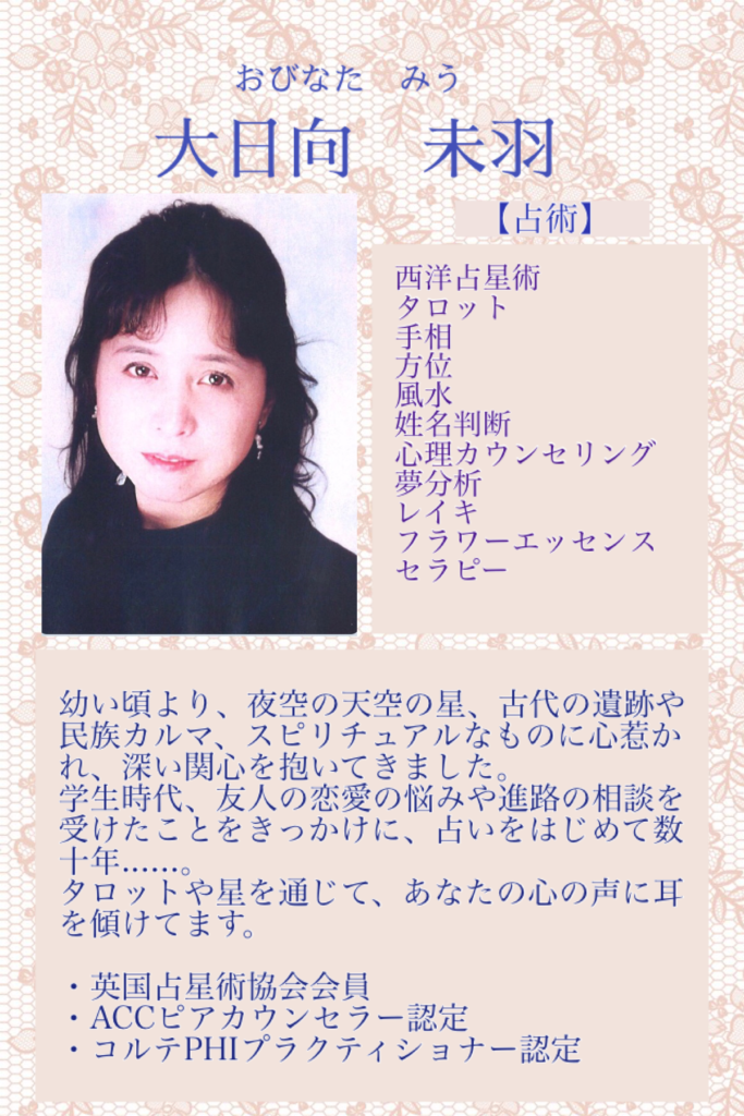 - 2.7 丁寧なカウンセリングと占術で相談者を幸せに導く「LIDIE ANGE(リディ―アンジュ)」の【大日向未羽(おびなたみう)先生】
