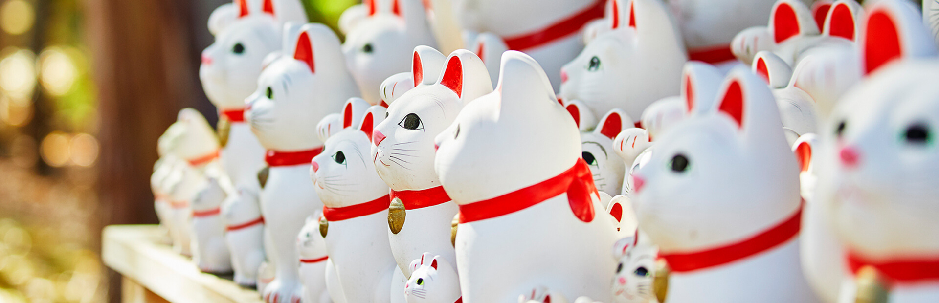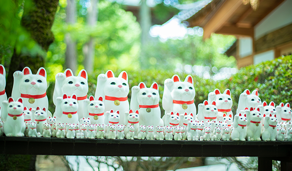東京都世田谷区にある豪徳寺には、「招福猫児(まねきねこ)」とも呼ばれる招き猫が祀られています。