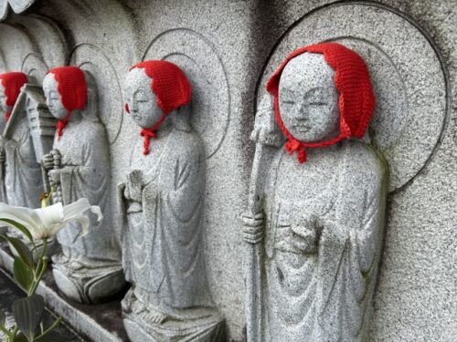お地蔵さんに赤い頭巾やよだれ掛けをつけているのは、魔除けの意味としてです。