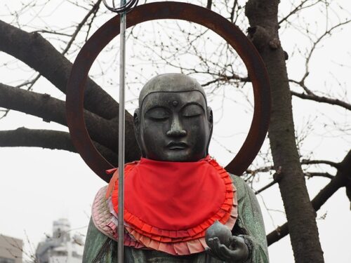 地蔵菩薩は地獄の六道で人々を救う役割を担っているため、修行中の人々にも救いの手を差し伸べて良い来世へ送ってくれるわけです。