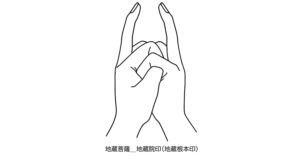 手印は、両手を組んで中指をくっつけずに立てた印相です。