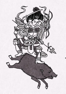 イノシシの背に乗った姿が多いことから、猪は摩利支天の眷属ともいわれている動物です。