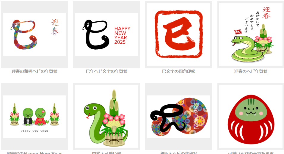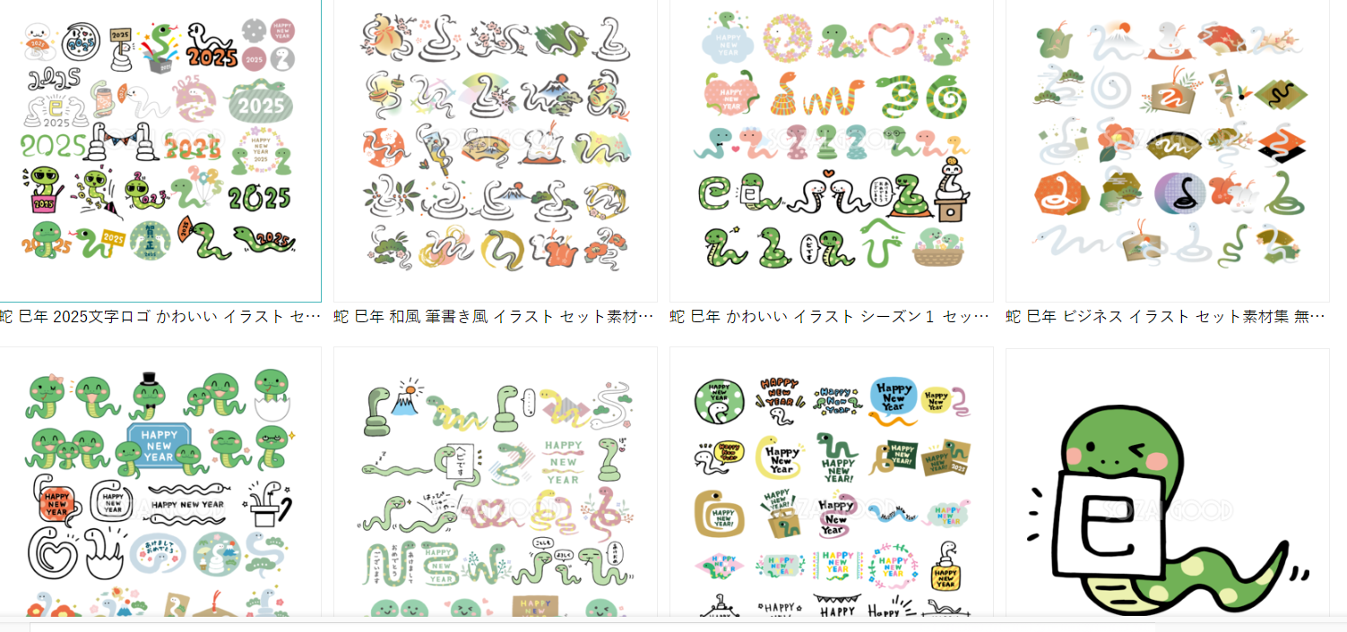 2025年の干支は巳年、年賀状やお正月に向けてイラストを探している方が少なくありません。