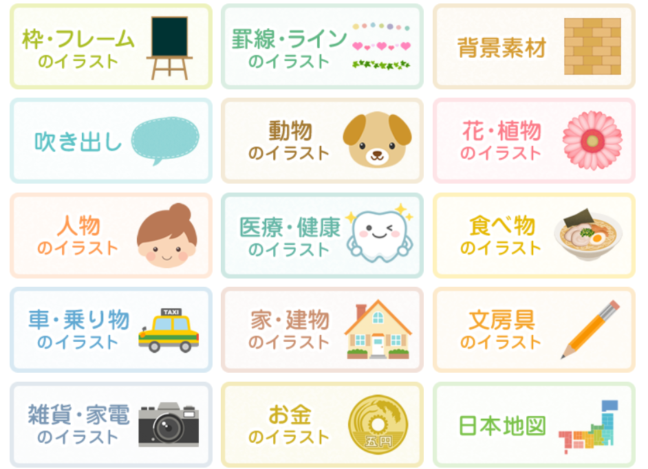パーツを集めたイラストもあれば、フレームとして利用できるものもあります。