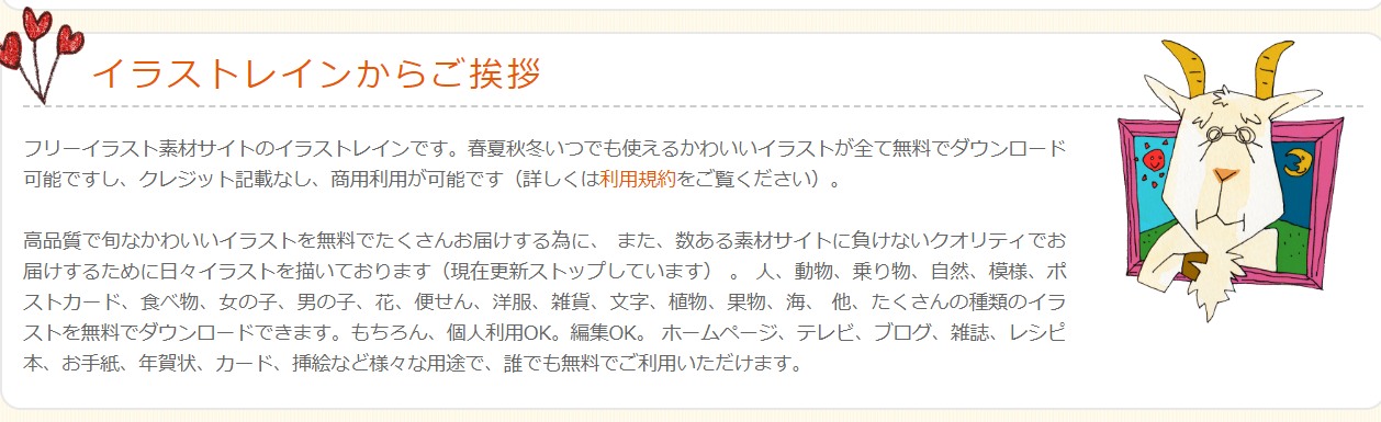 かわいいイラストを一枚一枚提供しているのが「イラストレイン」です。